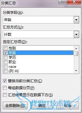 假如我要对年龄进行汇总,我们选择汇总项为年龄,点击确定