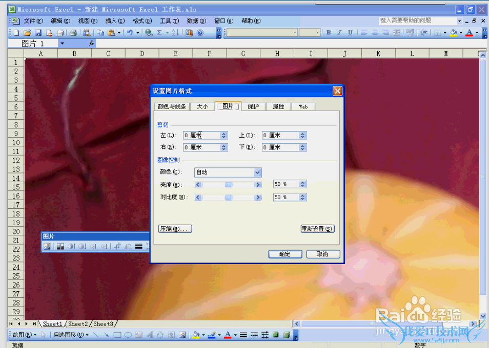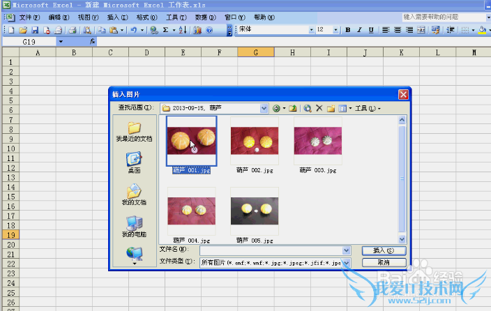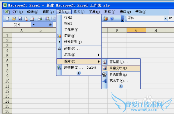 1.打开一个新建excel表格,在菜单栏处选择插入-选择图片-选择来自文件