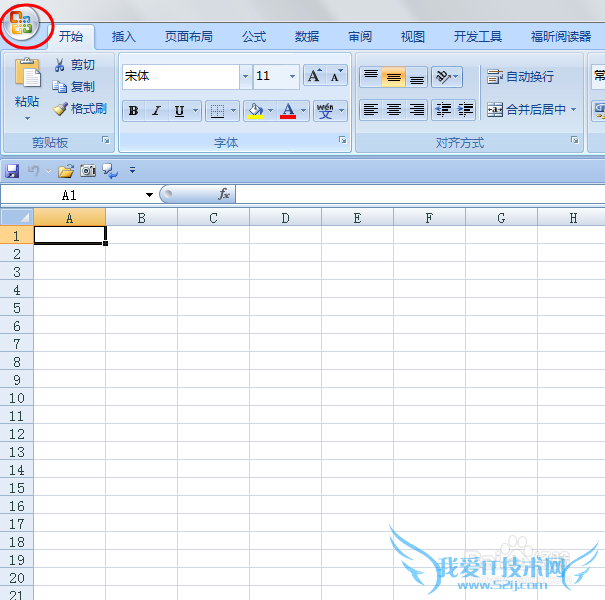 第二步、单击office按钮(在最左上角的按钮——红色圈圈标注的),如图: