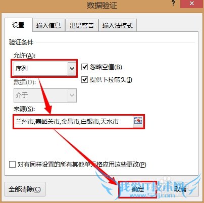 允许位置选择序列,来源处输入刚才设置的名称,两个名称之间使用英文逗号分隔,输入完毕后点击确定: