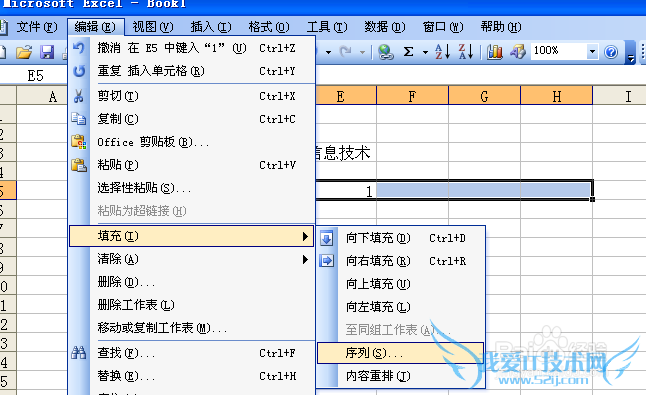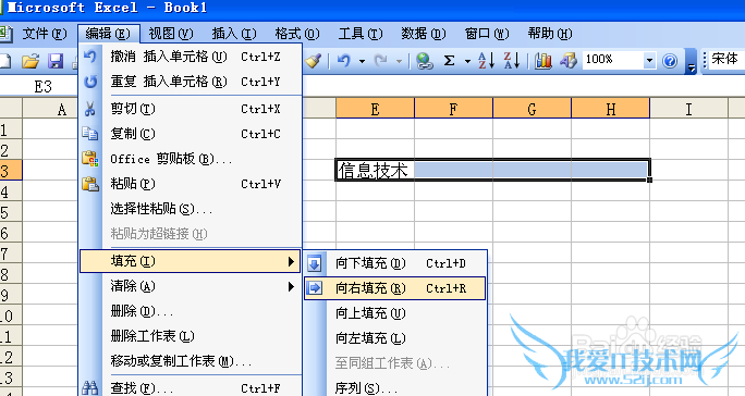 数据的填充:选定要填充的单元格内容以及填充的区域,单击菜单“编辑”|“填充”,在弹出的菜单中选择填充范围。