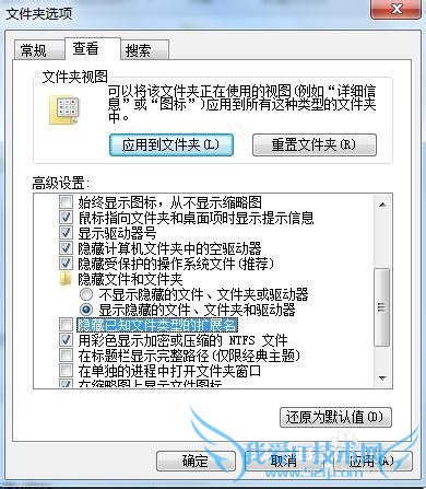 1.双击我的电脑或计算机(因系统不同,本人用的是Windows7)单击工具——文件夹选项——查看——隐藏已知类型文件的扩展名给取消【此步骤应适合XP,Windows7差不多】如下图: