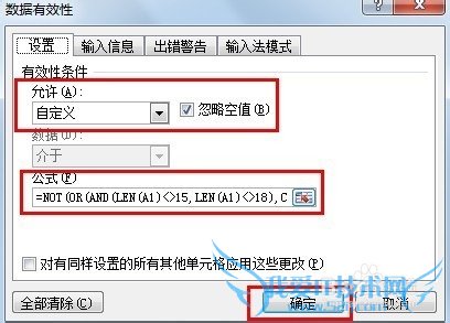 在“允许”下选择“自定义”,然后公式处输入:=NOT(OR(AND(LEN(g1)<>15,LEN(g1)<>18),COUNTIF(A:A,g1)<>1,ISERROR(1*TEXT((LEN(g1)=15)*19&MID(g1,7,6+(LEN(g1)=18)*2),"#-00-00"))))
