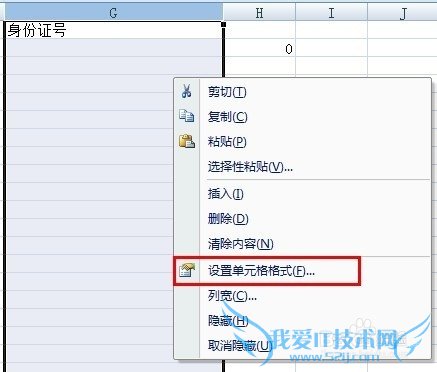 右击身份证列,然后选择“设置单元格格式”:
