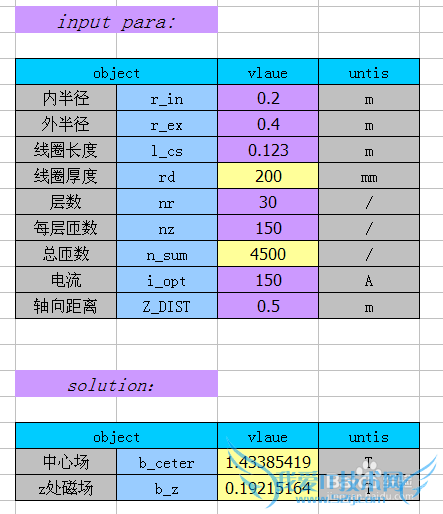 实际中求单个螺线管磁场需要用到其他软件,比较麻烦,因此特地弄个excel表格,简单快速。