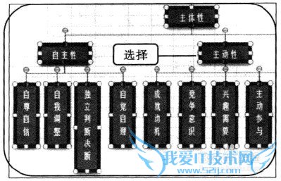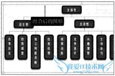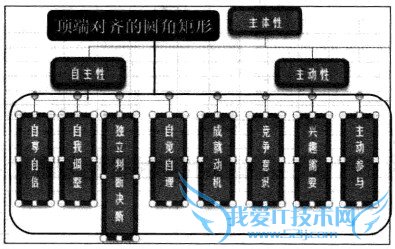 返回工作表,可得到一个组合在一起的图形,选择任意一个圆角矩形和肘形连接符,即可看到形状外边缘显示的矩形。