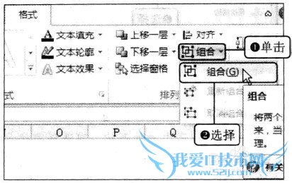 在“图片工具-格式”选项卡的“排列”组中单击“组合”按钮,在弹出的下拉列表中选择“组合”选项。