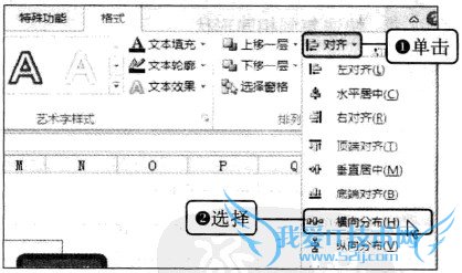 再次单击“对齐”按钮,在弹出的下拉列表中选择分布方式,这里选择“横向分布”选项。