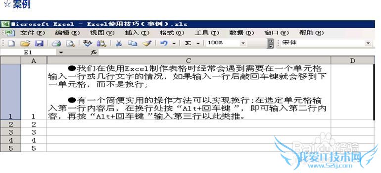 我们在使用Excel制作表格时经常会遇到需要在一个单元格输入一行或几行文字的情况,如果输入一行后敲回车键就会移到下一单元格,而不是换行,有一个简便实用的操作方法可以实现换行:在选定单元格输入第一行内容后,在换行处按“Alt+回车键”,即可输入第二行内容,再按“Alt+回车键”输入第三行以此类推。