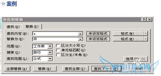 有时候我们在一张工作表中要多次输入同一个文本,特别是要多次输入一些特殊符号(如※),非常麻烦,对录入速度有较大的影响。先在需要输入这些符号的单元格中输入一个代替的字母(如X,注意:不能是表格中需要的字母),等表格制作完成后,单击“编辑→替换”命令,打开“替换”对话框,在“查找内容”下面的方框中输入代替的字母“X”,在“替换为”下面的方框中输入“※”,将“单元格匹配”前面的钩去掉(否则会无法替换),一次性全部替换完毕。