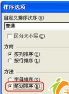 对“姓名”进行排序时,国人喜欢按“姓氏笔划”来进行:选中姓名列任意一个单元格,执行“数据→排序”命令,打开“排序”对话框(参见图2),单击其中的“选项”按钮,打开“排序选项”对话框(图3),选中其中的“笔划排序”选项,确定返回到“排序”对话框,再按下“确定”按钮即可。