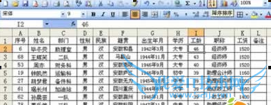 如果我们希望对员工资料按某列属性(如“工龄”由长到短)进行排列,可以这样操作:选中“工龄”列任意一个单元格(如I3),然后按一下“常用”工具栏上的“降序排序”按钮即可(参见图1)。