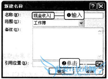 弹出“新建名称”对话框,在“名称”文本框中输入想要定义的名称,这里输入“现金收入”,单击“引用位置”文本框右侧的折叠按钮。