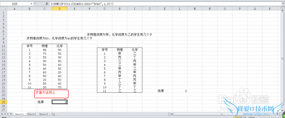 用Excel求区域中同时满足多个条件的数值个