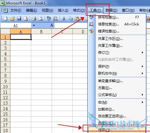 打开你需要加密的 Excel 软件,在菜单栏上单击选择【工具】——【选项】。