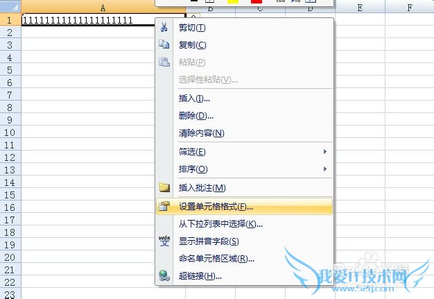 右键单元格选择设置单元格格式