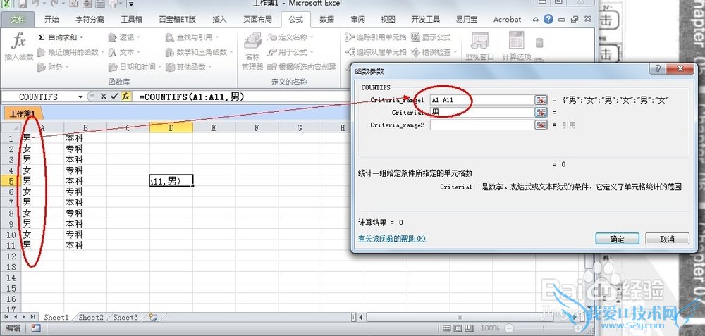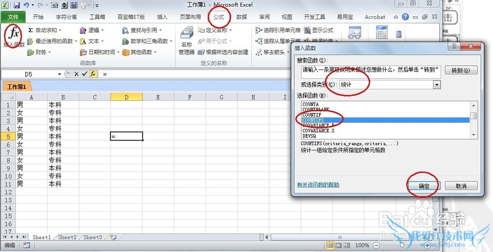点击公式--插入函数--选择统计函数-找到COUNTIFS