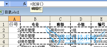 1、在原数据区(sheet1)中添加一列“行号”,写入公式:=row()。