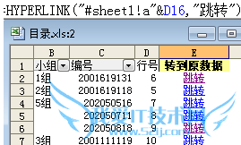 =HYPERLINK("#sheet1!a"&d16,"跳转")