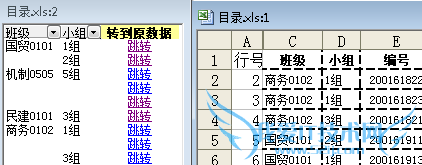 3、在sheet2中添加一列导航列“转到原数据”,写入公式,链接到sheet1的行号,比如: