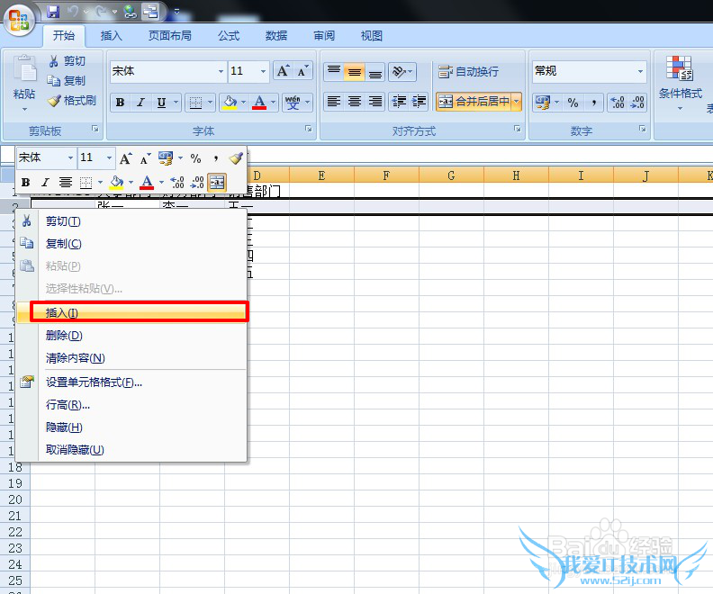我们可以发现,这里的插入是在你选中的行的上面,如果是插入列则会是在选中的列的左侧。这点要注意,根据需要来选择要选中的行或列。