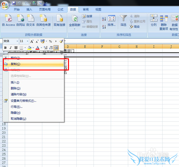 选中改行,然后右击鼠标,找到“复制”,点击后该选中的行会如下图。