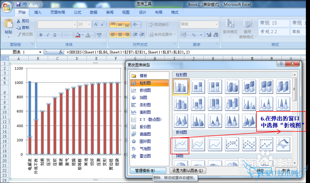 选中砖红色柱形图,右键单击“更改系列图表类型”