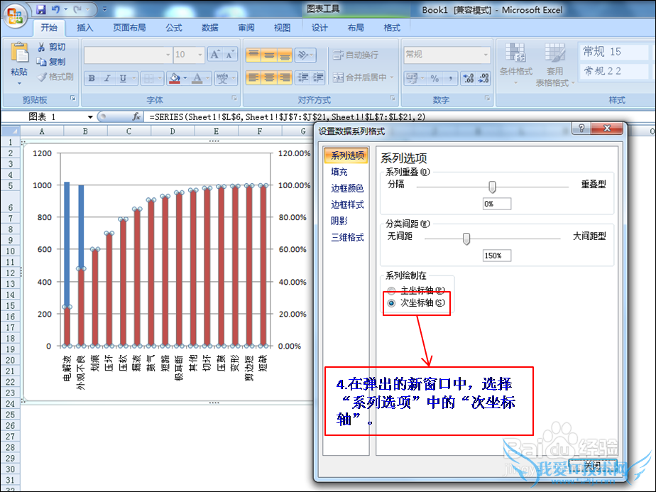 在弹出的新的窗口中选择“系列选项”中的“次坐标轴”选项