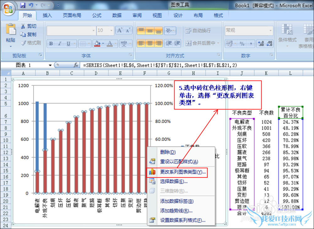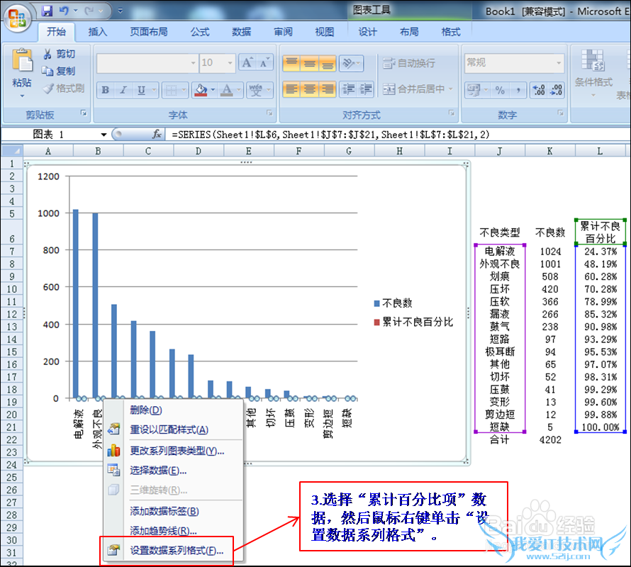 选择“累计百分比项数据”,右键单击,选择“设置数据系列格式”