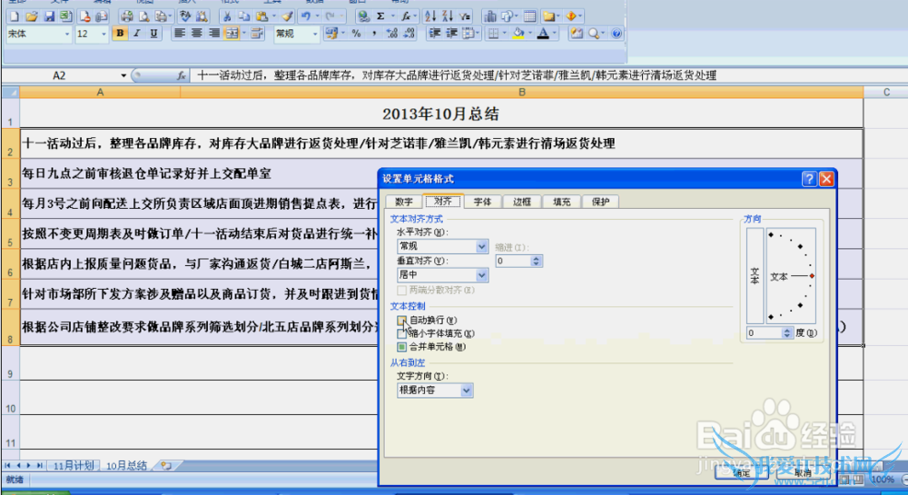 3.在弹出的对话框中选择对齐-勾选自动换行