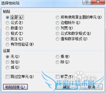 在弹出的设置框中,点击【粘贴链接】。这样我们粘贴的结果就会以粘贴的方式粘贴到新的地方,如果只需要粘贴结果数值,而不需要同步更新结果,在【选择性粘贴】设置窗口中,选择“数值”就可以了。