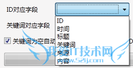 (d)分别将ID,标题,关键词的下拉列表中选上相应字段: