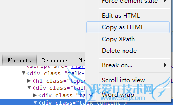 找到"talk-content“的html代码,再右键,点击【Copy as HTML】: