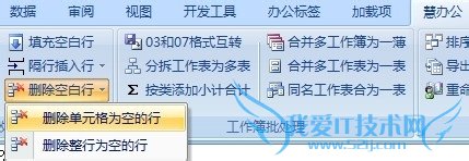 然后打开工作表,选择【慧办公】→【删除单元格为空的行】,如下图