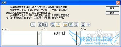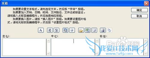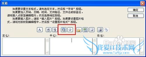 单击“左”、“中”或“右”框,即我们要设置页眉或页脚的位置;