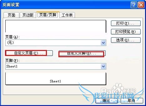 在打开的页眉和页脚设置对话框中, 我们选择“自定义页眉”或“自定义页脚”;