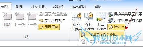Excel2010的突出显示修订位于【审阅】工具栏下,如图:
