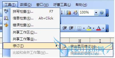 打开突出显示修订 Excel2003与Excel2010略有不同,Excel2003的突出显示修订位于【工具】->【修订】->【突出显示修订(H)...】,如图: