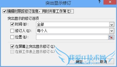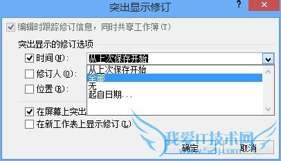 重新选择【突出显示修订】,在出现的对话框里,时间选项中,选择“全部”,然后【确定】
