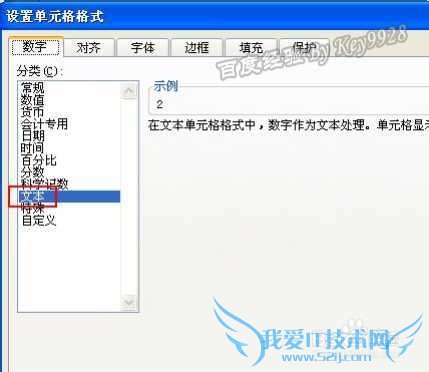 在弹出的“设置单元格格式”对话框中可以发现,当前格式是“文本”: