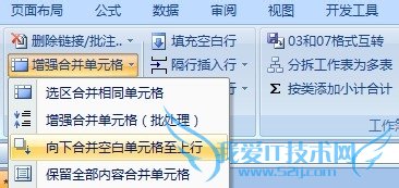 选择【慧办公】→【增强合并单元格】→【向下合并空白单元格到上一行】,如下图