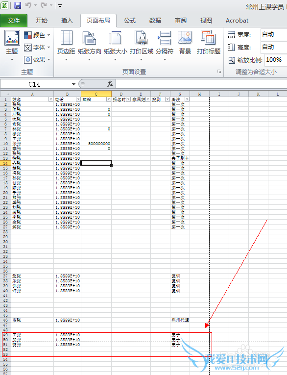 缩小后我们发现有一个已经超出虚线一格,(只有虚线内的在第一页)