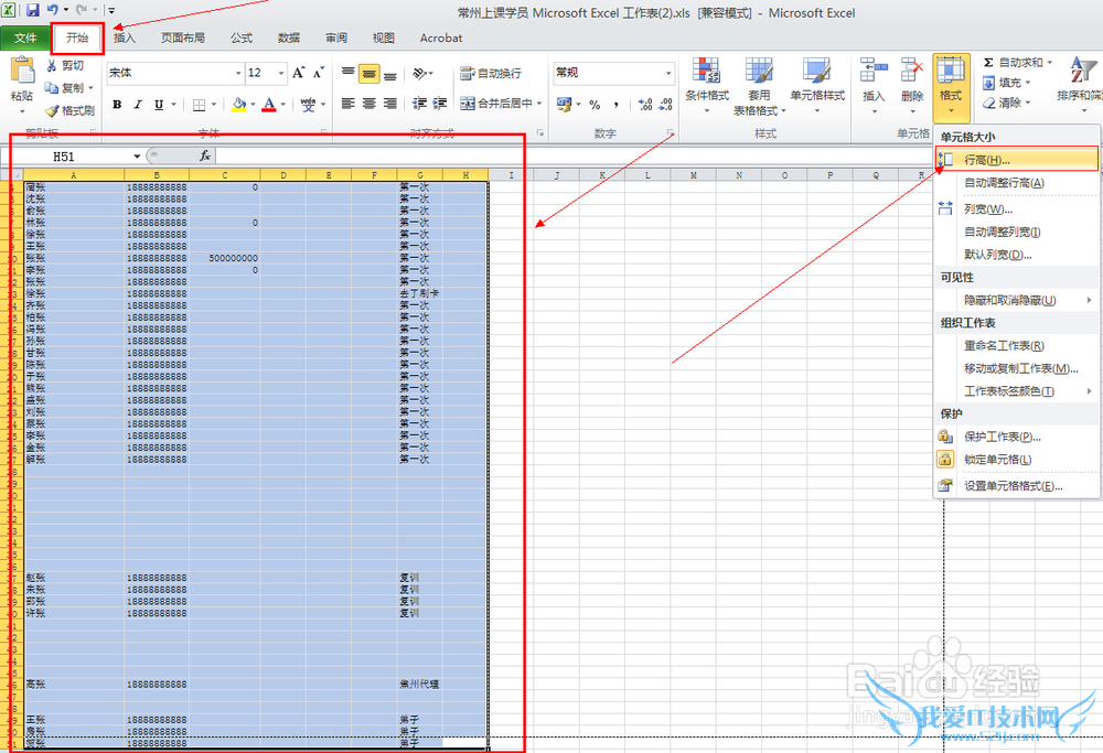 如图、选中你要调整的行,点开始--格式--行高,设置合适的行高尺寸!