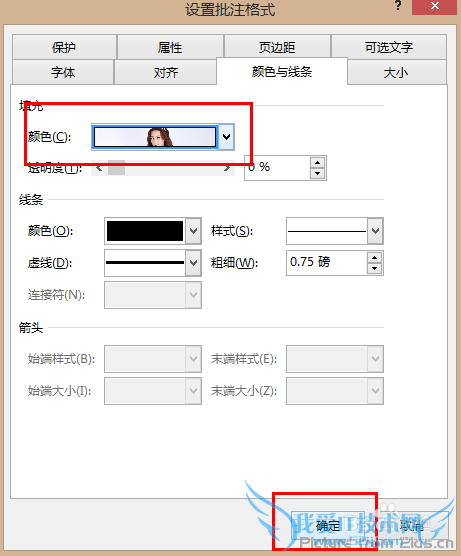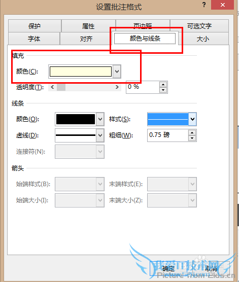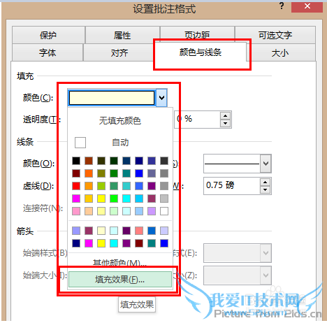 4、在打开的新窗口中选“颜色与线条”选项卡