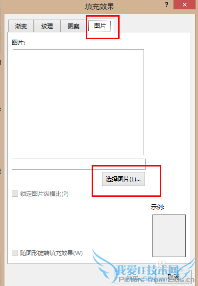 6、在新打开的填充效果窗口中选择“图片”选项卡,点击“选择图片”,选择你要插入的图片