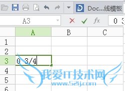 那么我们该如何输入分数四分之三呢?这里有两种方式,一种是加空格的方式,即在单元格内输入“0 3/4”,如图所示,然后回车,看下是不是在单元格内显示了“3/4”。