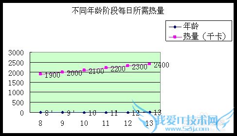 ③图标标题:不同年龄阶段每日所需热量图例位置:右上角数据标志:在“值”前打对钩