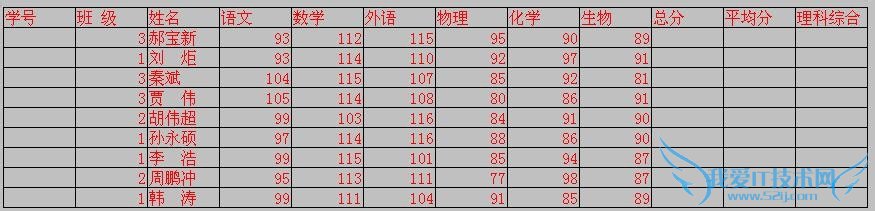 2、用函数计算“总分”、“平均分”、“理科综合”