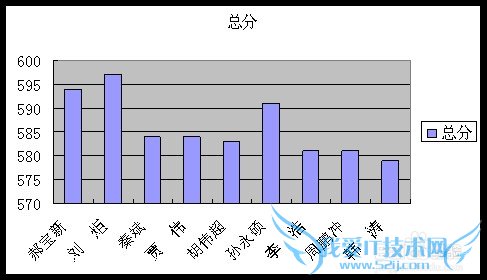 ②数据区域:姓名字段的数据和总分字段的数据,系列产生在:列