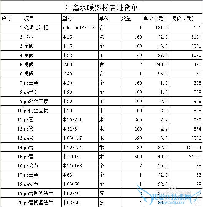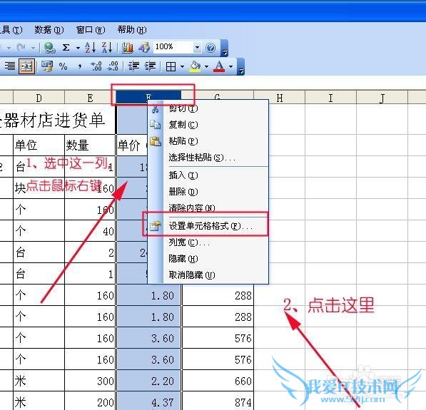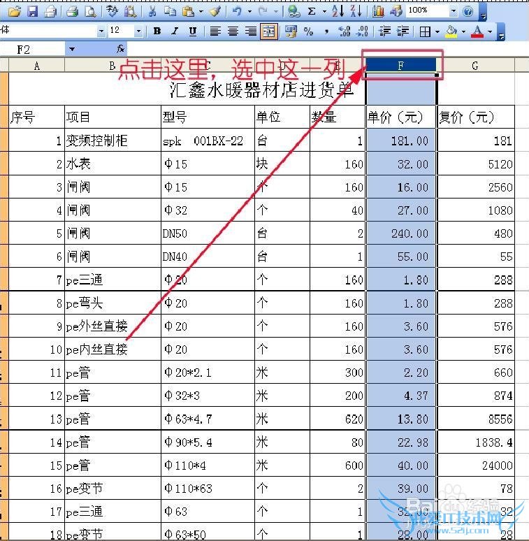 看下面这张“汇鑫水暖器材店进货单”,它的“单价”这一列是保留了两位小数。我们现在让它保留一位小数。